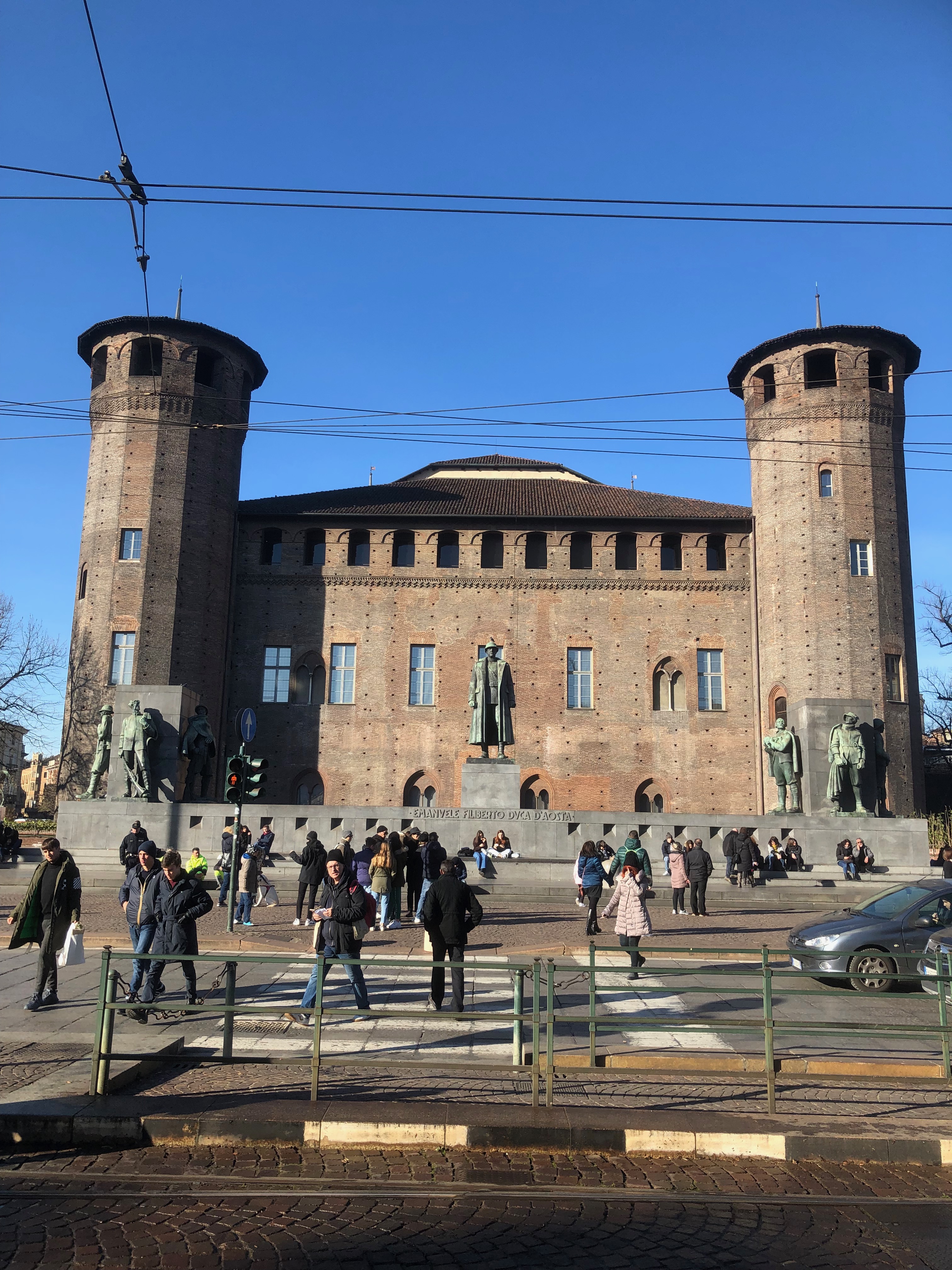 Prese in consegna le chiavi e mollate le borse in appartamento, partiamo, a piedi, alla volta del centro di Torino, distante poco più di dieci minuti. Passeggiando lungo i portici di via Po’ e sostando tra le numerose bancarelle, impieghiamo decisamente un po’ più di tempo. Giunti in Piazza Castello diamo una sbirciatina al mercatino di Natale.