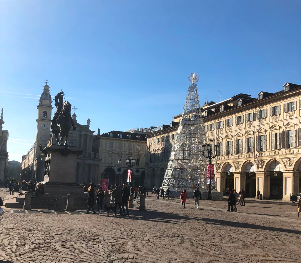 Perciò, dopo un paio d’ore di relax ed un aperitivo, risaliamo via Po’, per dirigerci in Piazza San Carlo, ad ammirare l’albero di natale.