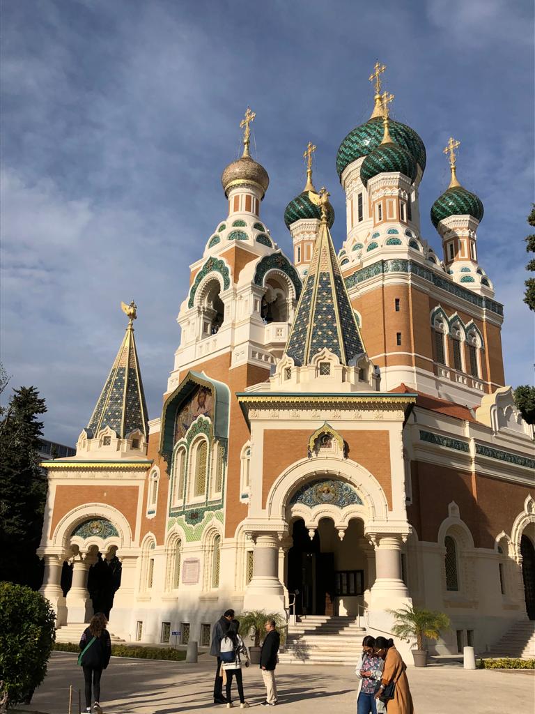 Nonostante l’incantevole panorama, non possiamo rimanere lassù in eterno. Prendiamo la scalinata per scendere fino alla Vieux-Nice. Una volta giunti in basso camminiamo fino alla fermata del tram nei pressi del moderno teatro di Nizza, sulla Boulevard Jean Jaurès. Da li saliamo a bordo del mezzo pubblico che ci porta in stazione, percorrendo tutta la Avenue Jean Médicin, zona pedonale, vero centro dello shopping della città. Dalla stazione ci incamminiamo per raggiungere la Cattedrale di San Nicola in Avenue Nicolas II, chiesa russa ortodossa in stile bizantino, una delle più importanti fuori dalla Russia. Dopo averla visitata al suo interno, riprendiamo un autobus che ci riporta nella zona dell’appartamento. La stanchezza inizia a farsi sentire e prima di cena ci prendiamo un attimo di relax.