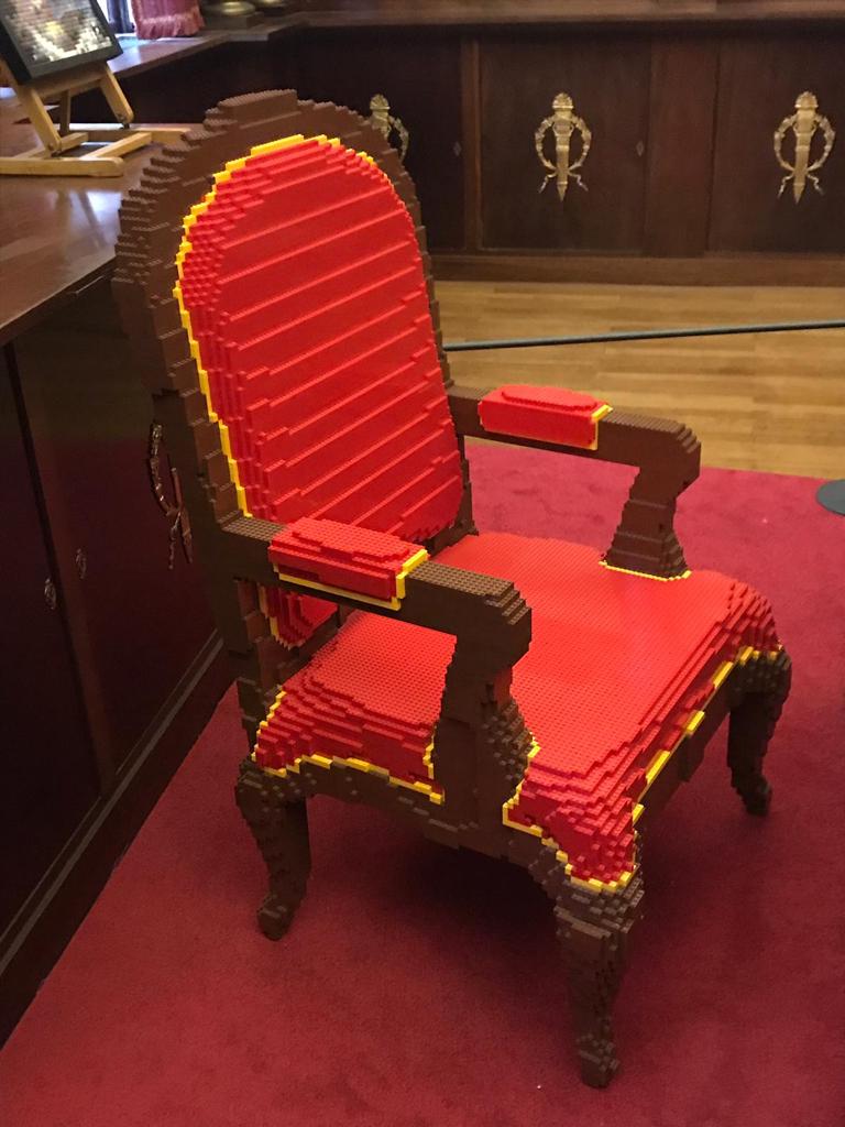 Riproduzione con i mattonicini Lego della poltrona e della scrivania di Napoleone