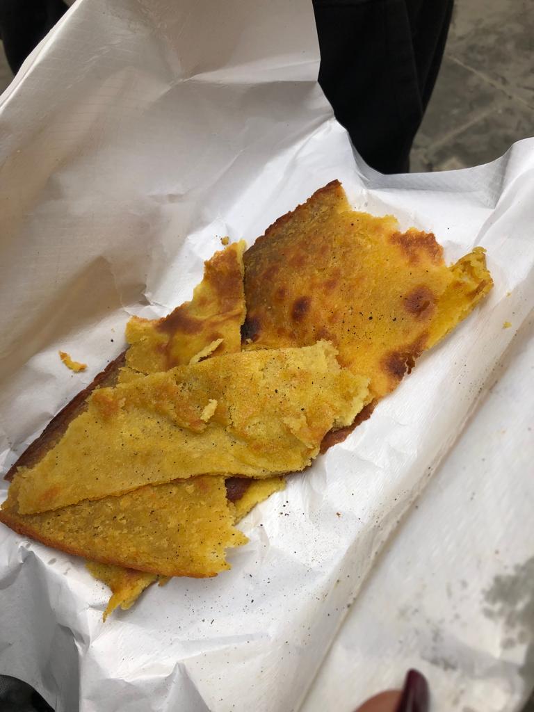 Sopra una porzione di Socca, acquistata in uno dei numerosi locali da asporto della Vieux Nice (foto sotto)